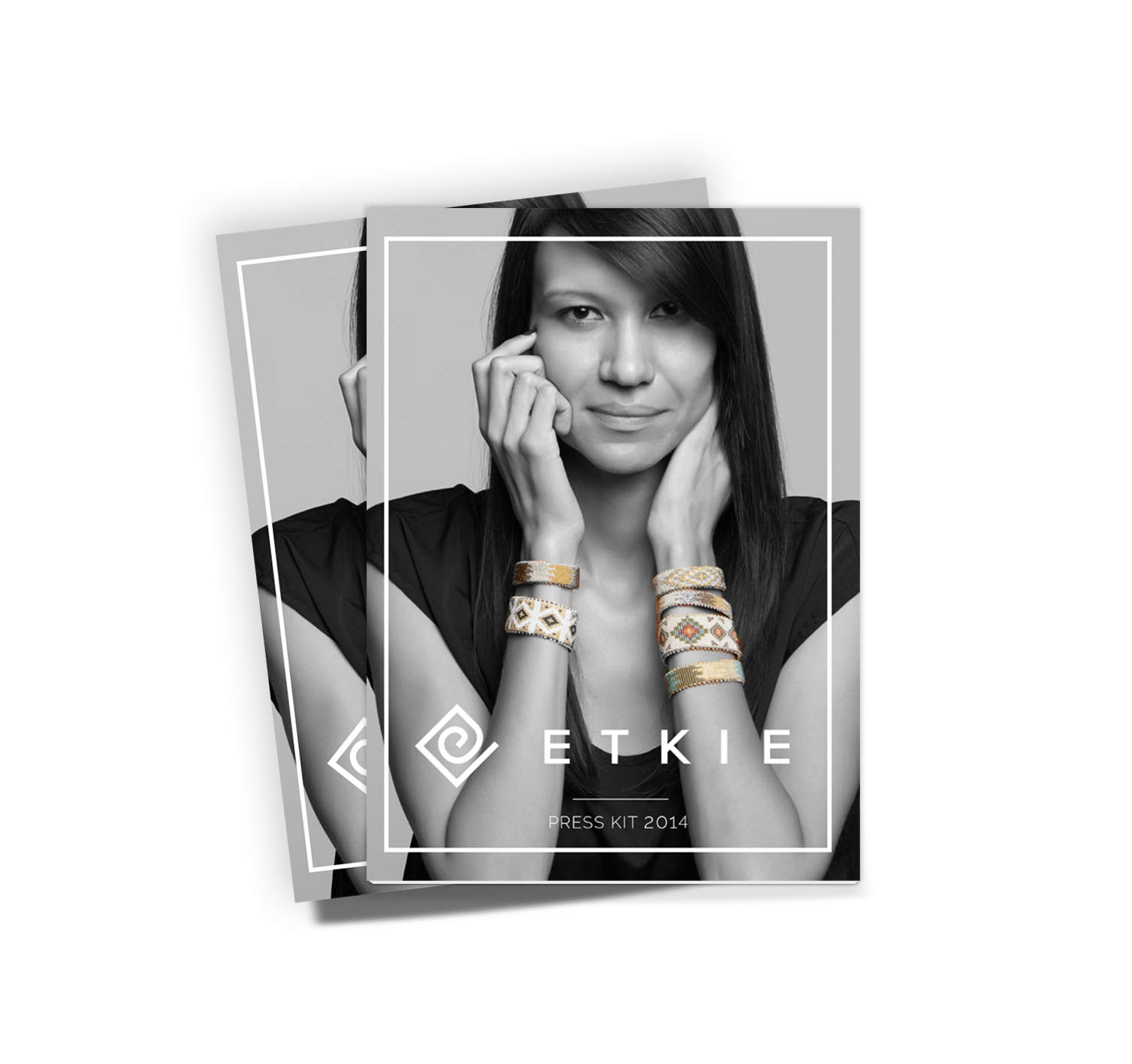 Etkie is a social enterprise that provides Native American beaders with a platform to create contemporary designs using the artistic traditions passed down from generations. Their mission is to honor the cultural heritage of Native Americans through their handmade beaded jewelry, while creating meaningful jobs for Indigenous women. I was tapped to create a suite of print materials for their 2014 collection.