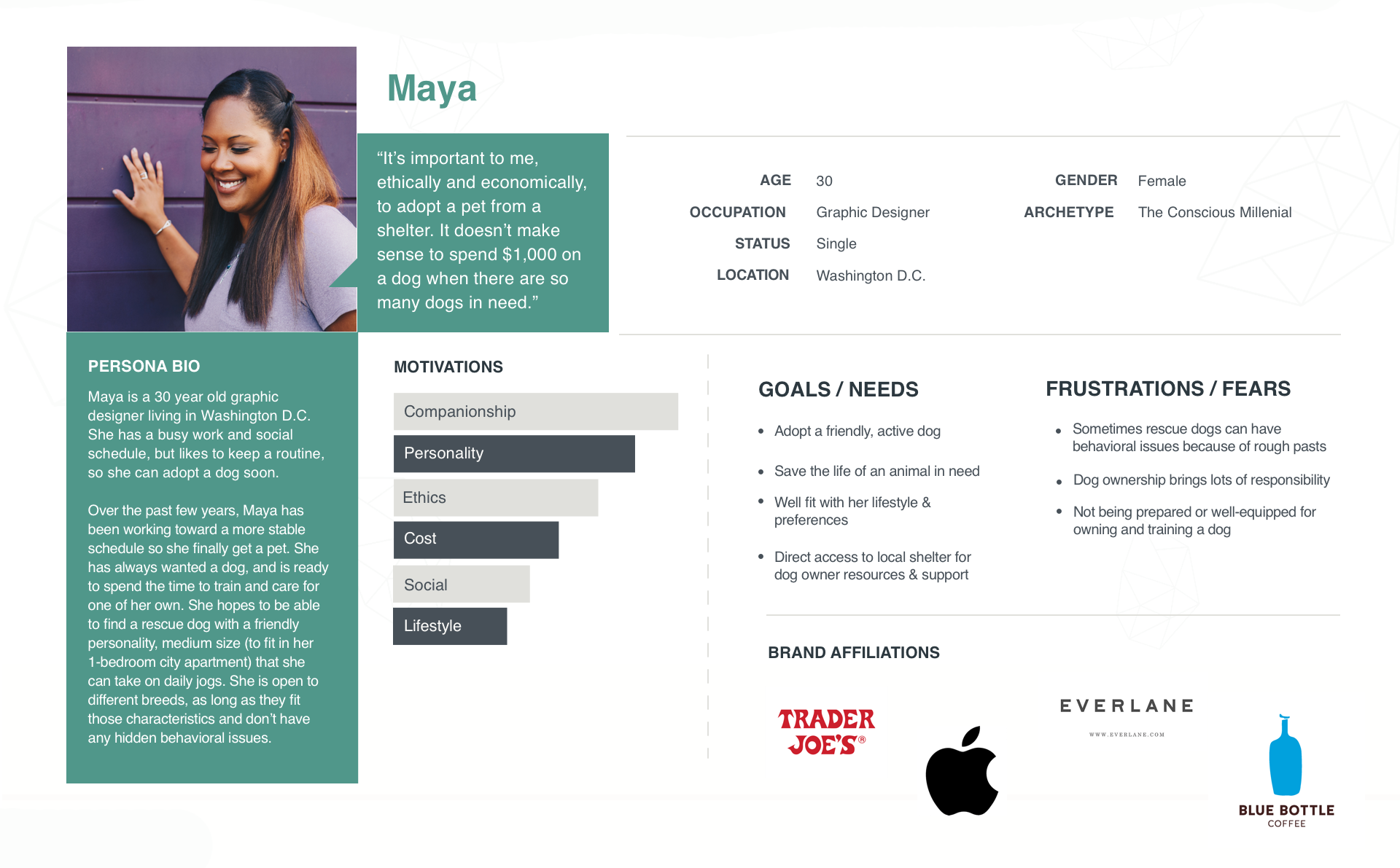 Problem: The organization does not have a website or web presence and is looking to expand awareness & discoverability of their services nationally, especially with young professionals in cities looking to adopt a pet responsibly.
