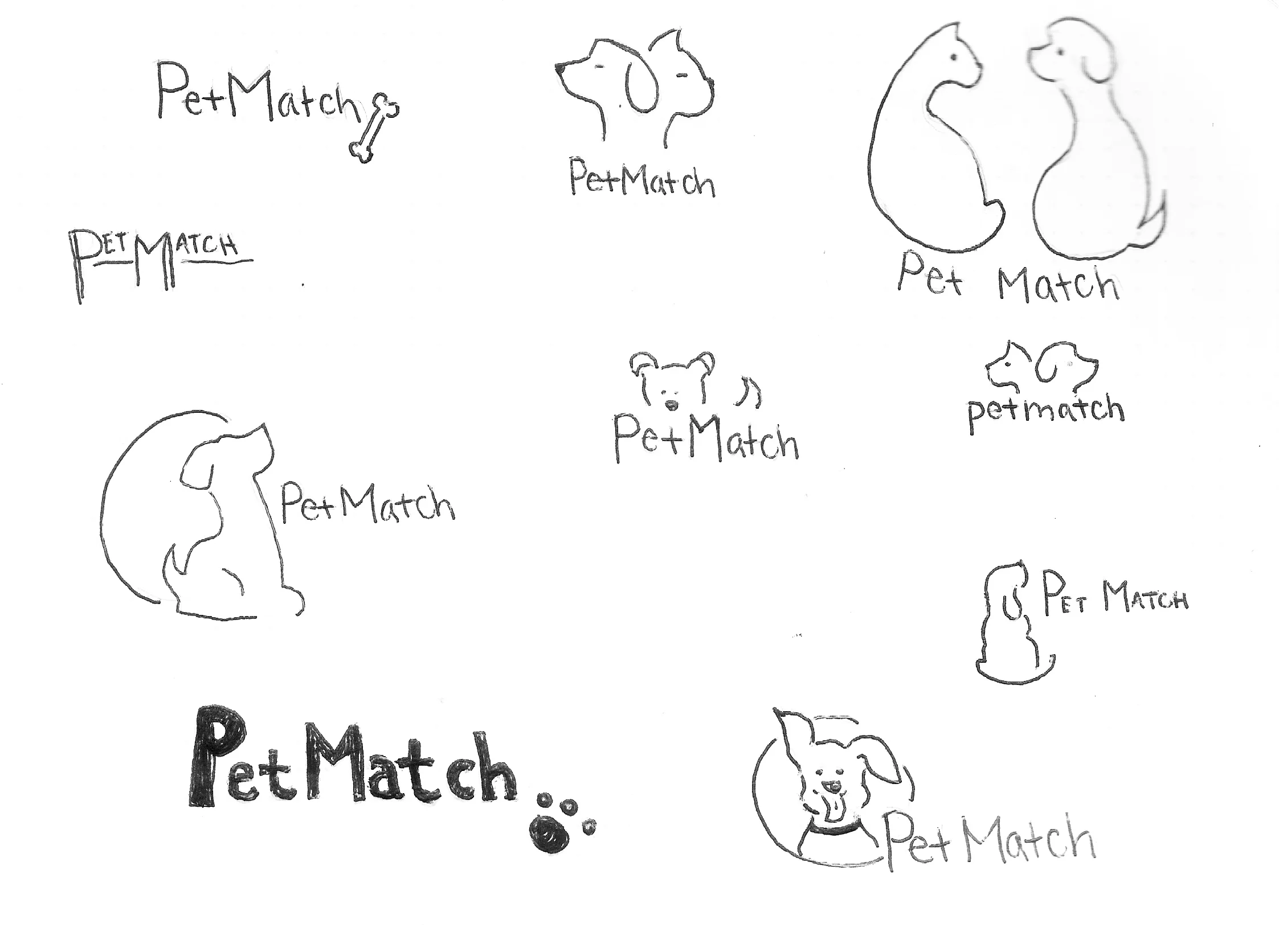 I worked on a few explorations of how PetMatch could be expressed visually. I wanted the brand to evoke the friendly, bright mood of the brand and it's mission, while still being modernly stylish.